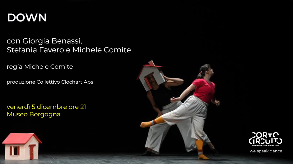 Down racconta la paura di una madre di mettere al mondo una figlia con la sindrome di Down e il coraggio della figlia stessa nell’affrontare le sfide della vita. È una storia di amore, ascolto e pazienza, in cui la bellezza si rivela nei silenzi e nelle carezze. Lo spettacolo conduce lo spettatore dentro le mura di una casa, simbolo delle fragilità di tutti noi, da accogliere senza giudizio. Realizzato dal Collettivo Clochart con la regia e drammaturgia di Michele Comite, unisce teatro e danza in 55 minuti intensi interpretati da Giorgia Benassi, Stefania Favero e Michele Comite. Vincitore di numerosi premi e riconoscimenti in festival nazionali e internazionali, è stato selezionato anche all’interno di rassegne prestigiose come “Colpi di Scena” e il Festival dello Spettatore. Down si afferma come un’opera capace di trasformare la vulnerabilità in forza e la diversità in occasione di incontro.