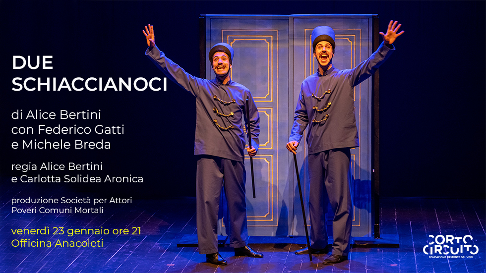 Due guardie reali, immobili da anni al loro posto, iniziano a scoprire passioni comuni, come il jazz, e a condividere piccoli gesti che incrinano la loro routine. Da questa complicità nasce l’idea di ribellarsi e di organizzare un colpo di stato contro la Regina, per liberarsi dal suo potere assoluto. Immaginano strategie e rivoluzioni, ma restano fedeli al loro ruolo di sentinelle, prigioniere della propria consegna. Ogni minima azione, però, modifica gli equilibri e porta conseguenze imprevedibili. Lo spettacolo intreccia ironia e riflessione, evocando lo Schiaccianoci come simbolo di protesta e di trasformazione: non più un singolo eroe ma una pluralità di voci. Il jazz diventa metafora di libertà e improvvisazione, contrapposto ai canoni rigidi del potere. Due Schiaccianoci racconta così la tensione tra obbedienza e rivoluzione, immobilità e desiderio di cambiamento.