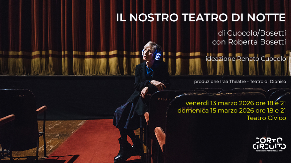 Il nostro teatro di notte, ideato da Renato Cuocolo e scritto con Roberta Bosetti, è un viaggio poetico nel regno notturno del pensiero. La notte diventa spazio di memorie, sogni e paure, in cui i confini si fanno labili e il quotidiano si trasforma in qualcosa di perturbante. In scena Roberta Bosetti intreccia ricordi e visioni, invitando lo spettatore a un ascolto profondo, a scoprire un “teatro dentro” che nasce dal buio. Testi e suggestioni nascono da esperienze personali, notti insonni, frammenti di vita e immagini incontrate. Lo spettatore è chiamato a un percorso interiore, specchiandosi nell’intimità rivelata dall’attrice. È un teatro di percezione, sospeso tra realtà e sogno, intimo e universale.